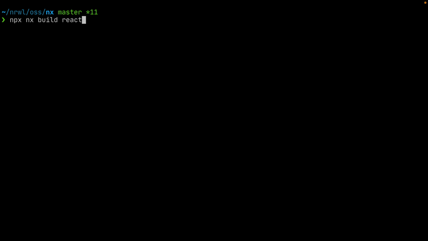 We now even filter out the build of dependent projects. Say you build the react project in your workspace which depends on 11 other projects. Nx needs to first incrementally build those 11 dependent projects, which it does now in a very subtle way by just reporting the overall progress at the top of the terminal output, while the main react project build output is printed just as normal.